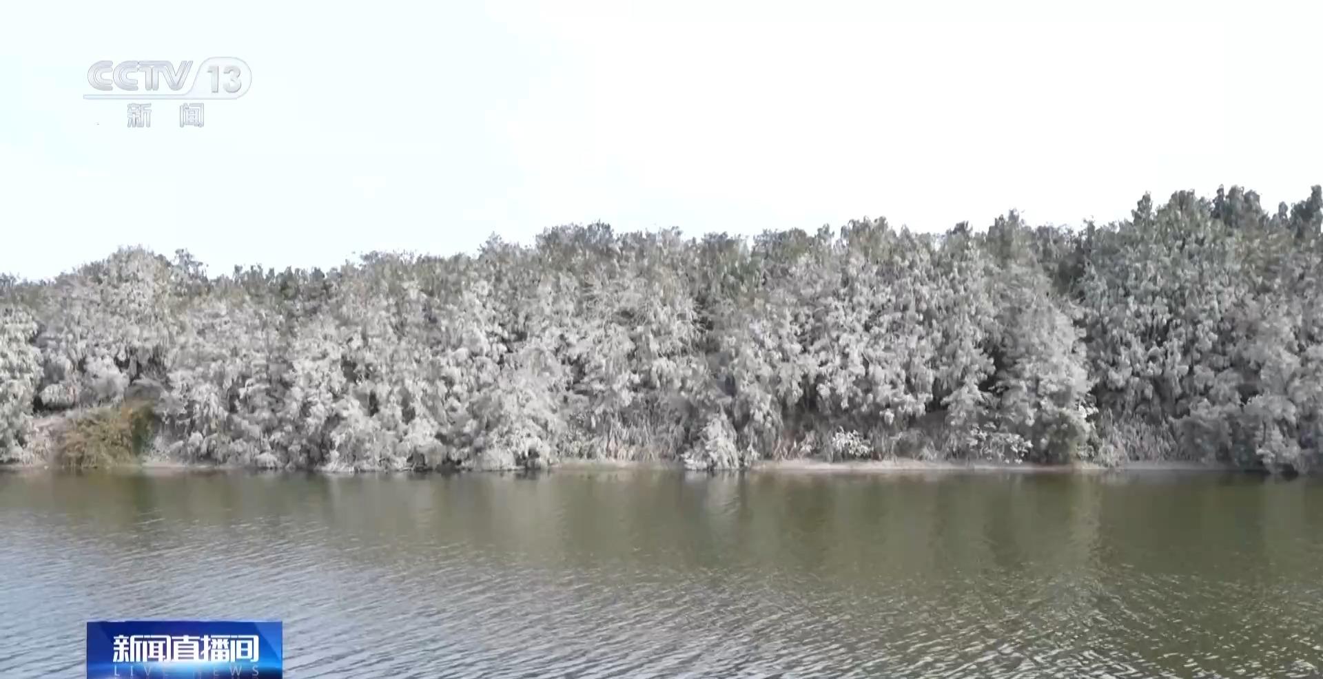 來(lái)到福州市長(cháng)樂(lè )區的東湖濕地,400多米的木麻黃林沿著(zhù)湖邊綿延。這片樹(shù)林“銀裝素裹”,仿佛披上了一件素雅的冬裝。成群的鸕鶿在這里棲息,有的在水面上低飛覓食,有的停留在樹(shù)梢休憩。疑似“霧凇”的景觀(guān)吸引了不少觀(guān)鳥(niǎo)愛(ài)好者到來(lái)。