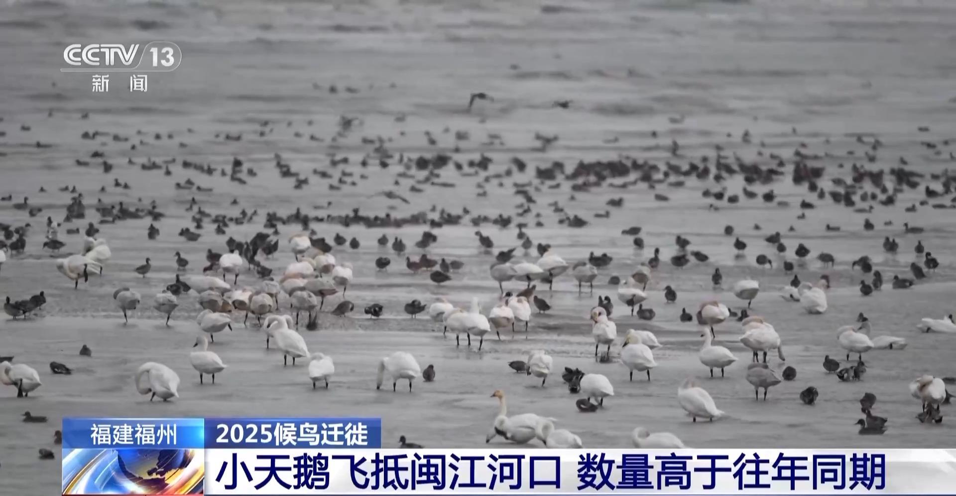 閩江河口濕地國家級自然保護區管理處科研監測科副科長(cháng) 高居娟:今年的越冬季,我們最早是在10月29日有監測到一只“探路”的小天鵝,到11月初就迎來(lái)了一家六口的小天鵝,從那之后小天鵝的數量快速增長(cháng),一周之內可以增加幾十只甚至上百只。最新的數據,監測到小天鵝的數量已經(jīng)達到了980只,遠高于往年同期200只的數量。